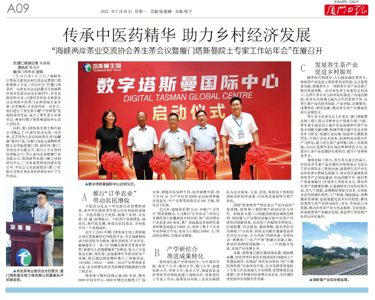 7月17日,“海峽兩岸茶業(yè)交流協(xié)會養(yǎng)生茶會議暨廈門塔斯曼院士專家工作站年會”在廈門市隆重召開。